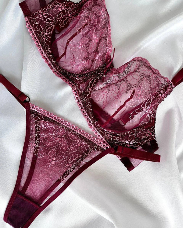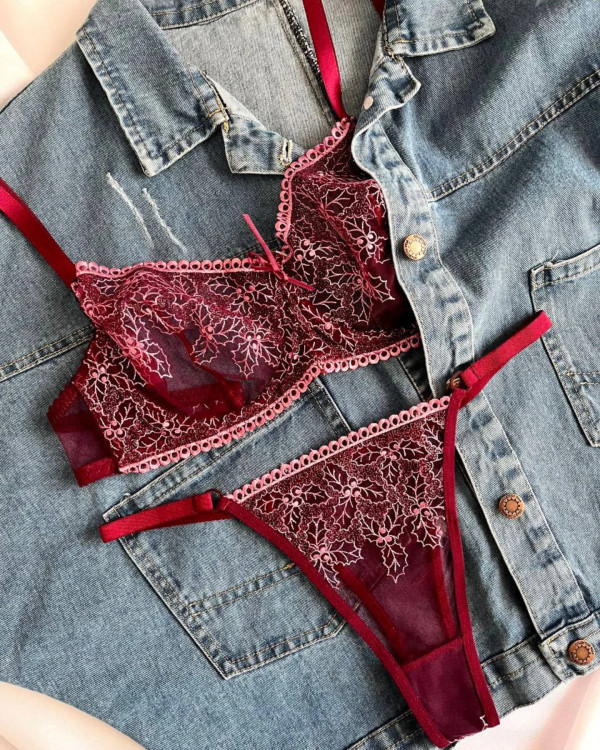 ست شورت و سوتین توری لمون